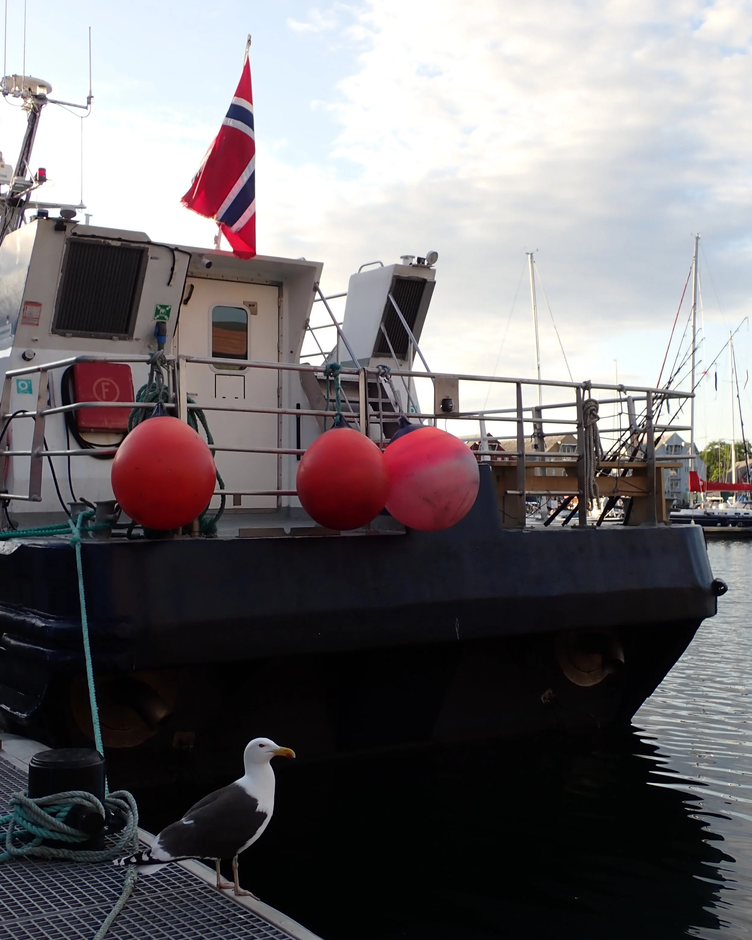 Norjalaine merilokki Tromssan satamas. Kuva: Heli Laaksonen 2025.